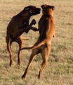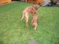 Dayo hat so viel Ähnlichkeit mit unserem "Engel Tambo". Er ist genauso verschmust - wenn ich zu ihm sage "Dayo sollen wir küssen", dann kommt er sofort an und schleckt einem durch´s Gesicht. Auch ist er so eingebildet, wie Tambo war - er weiß halt genau, das er ein bildhübscher Kerl ist :-). Und empfindlich ist er, sobald auf seiner Decke ein wenig Dreck von draußen ist, legt er sich nicht darauf ab. Andersrum aber nimmt er im Wald oder auf dem Feld jedes Schlammloch mit. Er ist wirklich ein ganz toller Jung. Eine Baustelle haben wir nur zur Zeit mit ihm - wenn wir im "Doppelpack" (mit Yebo) unterwegs sind und er angeleint auf andere Hunde trifft - die dann auch noch bellen - ist er kaum noch zu halten. Daran arbeiten wir zu Zeit und wir schieben das auch ein wenig auf seine Pupertätsphase. Wenn man wiederum alleine (ohne Yebo) mit ihm unterwegs ist, benimmt er sich zu 90% an der Leine total super. Ich denke aber auch, das es ein wenig mit der "Rudelhaltung" zu tun hat. Yebo macht sich aus anderen Hunden rein gar nichts, wenn aber sein Freund Dayo anfängt zu meckern, dann macht sogar unser "junger" Opa Yebo mit.