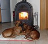 Kamin. Die beiden liegen dann auf der Decke, putzen sich die Ohren, knabbern sich das Fell oder schauen einfach nur in die Flammen. Erst wenn es richtig heiß wird, gehen sie von dem Ofen